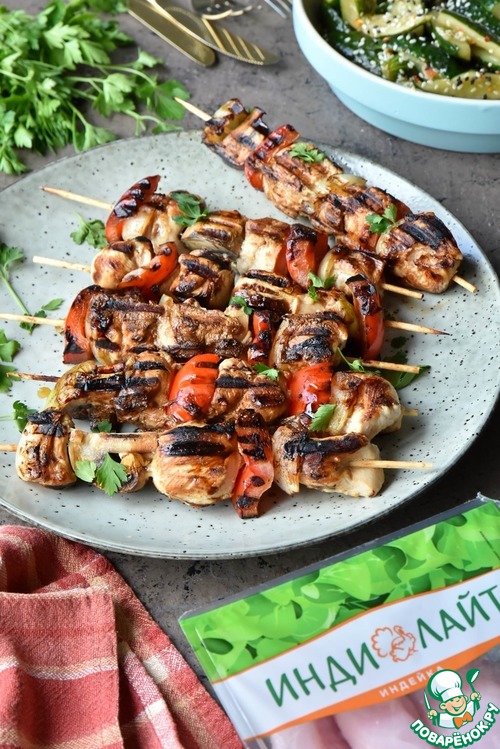 Рецепт «Шашлычки из индейки с медом и чесноком»:
