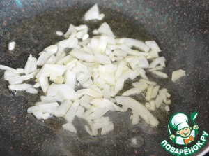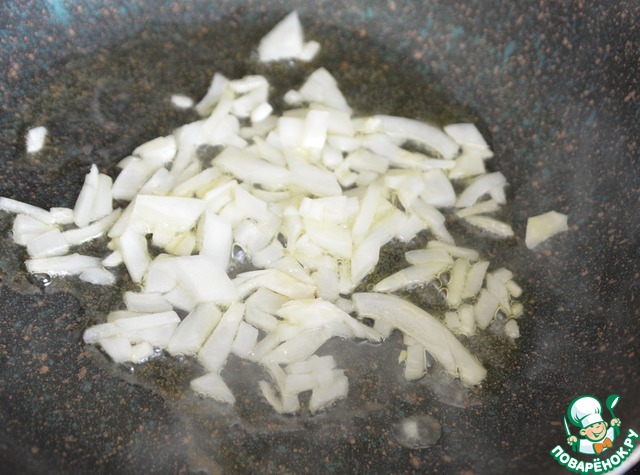 Сковороду нагреваем, наливаем масло, кладём лук, обжариваем до прозрачности около 5 минут на среднем огне, помешивая.