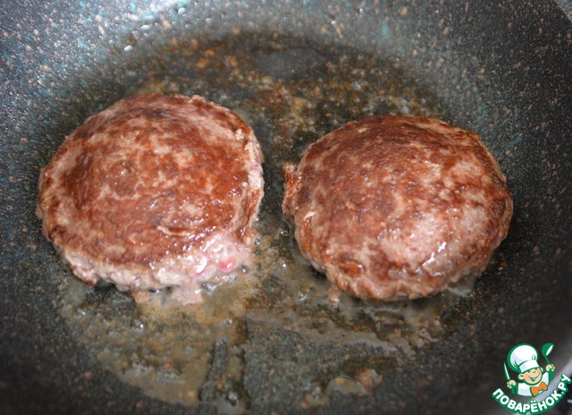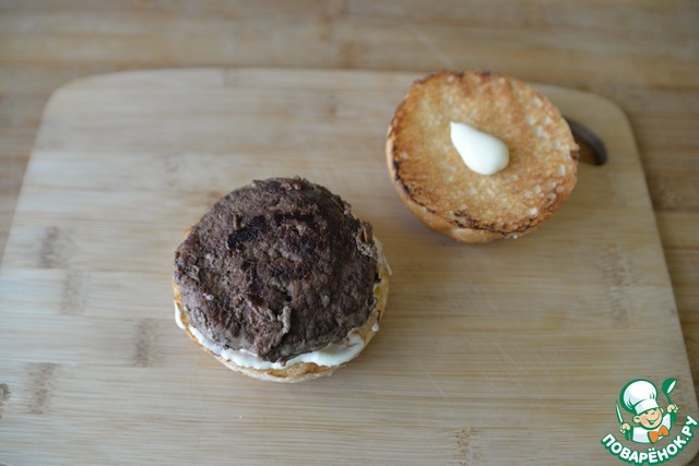 Формируем из фарша плоские круглые котлеты, диаметром чуть больше диаметра булочки, с которой будем делать бургер. Слегка подмораживаем заготовки, чтобы они не развалилилсь при жарке.