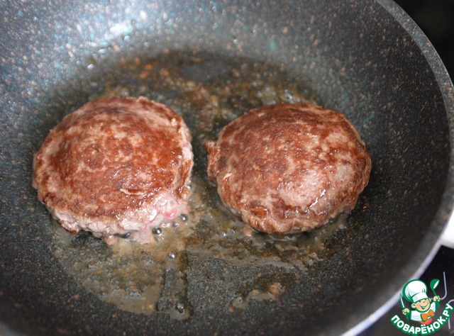 • Формируем из фарша плоские круглые котлеты, диаметром чуть больше диаметра булочки, с которой будем делать бургер. Слегка подмораживаем заготовки, чтобы они не развалилилсь при жарке.