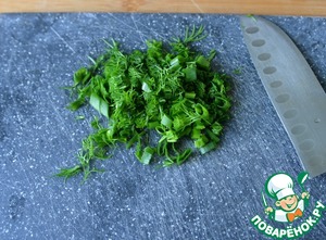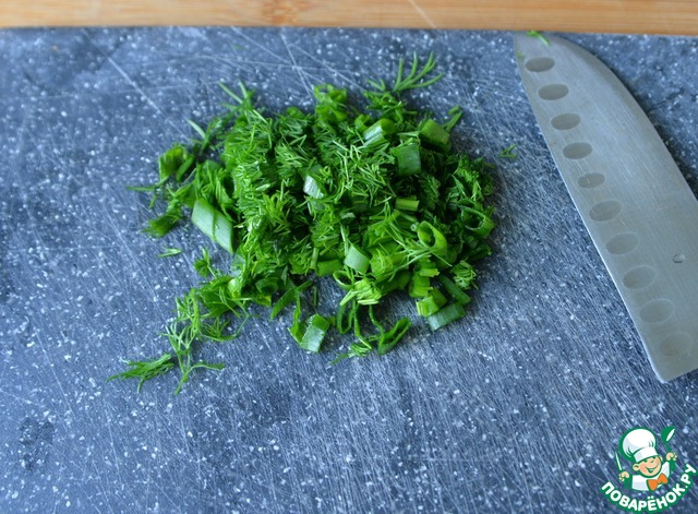 Готовим соус. Зелёный лук и укроп моем, обсушиваем, мелко режем.