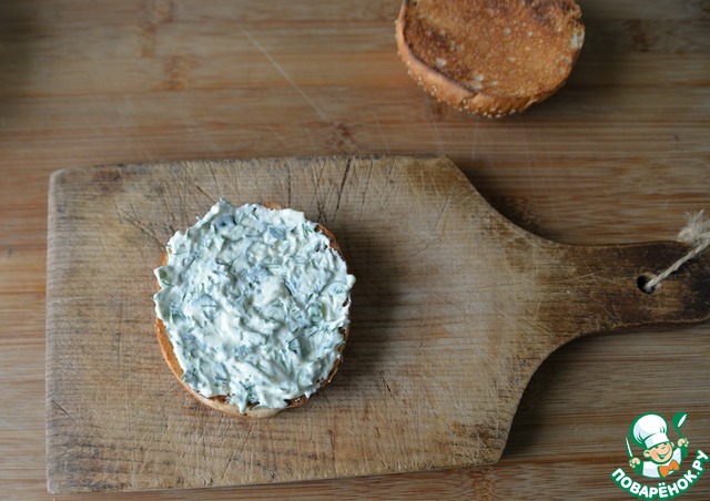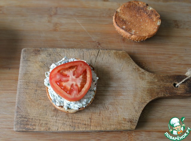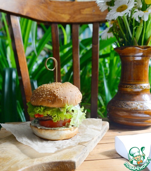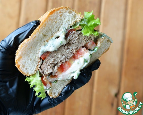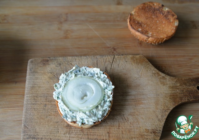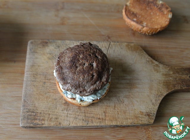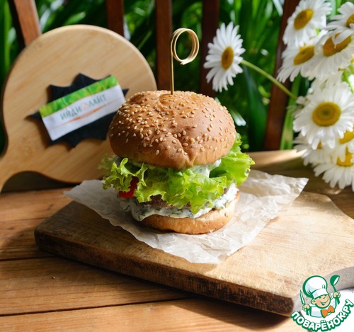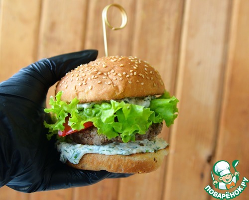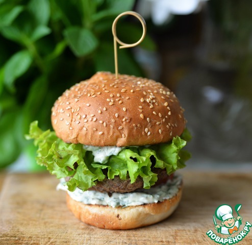 Рецепт «Бургер с индейкой и творожным соусом»: