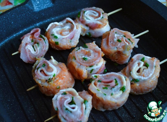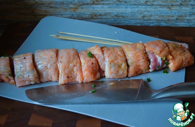 Рецепт «Шашлыки-рулеты из индейки с беконом»: