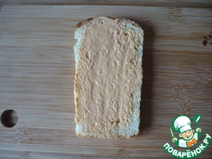 Подсушенные на сковороде-гриль ломтики хлеба смажьте соусом (у меня был соус "американский бургер").