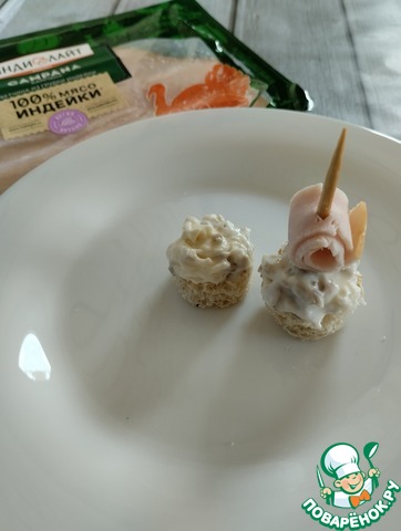 Собираем канапе. Подавать можно как на шпажках, так и в виде бутербродов. Украшение и подача на Ваш вкус.