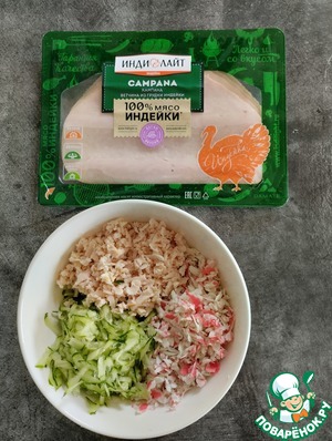 Ингредиенты для «Закуска из ветчины и крабовых палочек»: