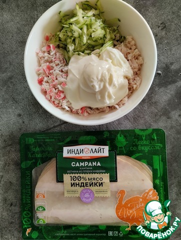 Закуска из ветчины и крабовых палочек