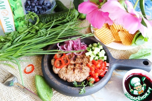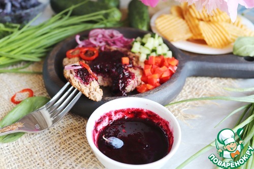 Плескавица это сербская котлета, только её делают обязательно большой и круглой и, конечно, кладут паприку, перец и много лука. Жарят её на гриле. Предлагаю к такой котлете приготовить очень вкусный ягодный соус из жимолости с зеленью, чесноком и чили. Соус варится и его можно заготовить на зиму.