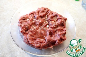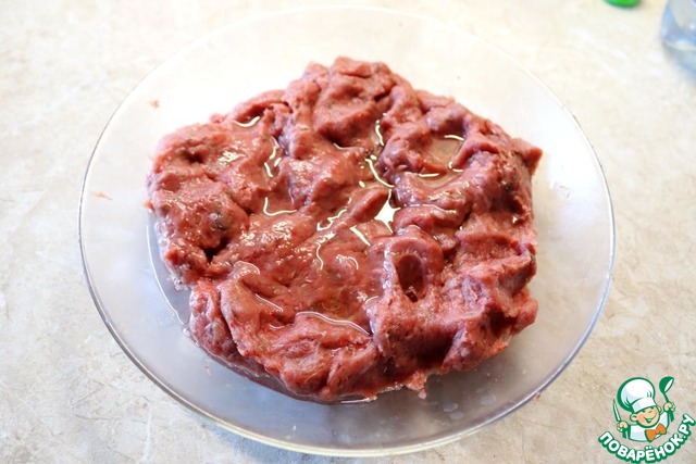Наливайте минералку не всю сразу, смотрите, чтобы фарш не получился слишком жидким. -
