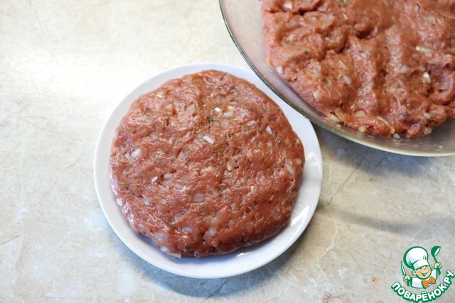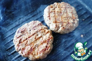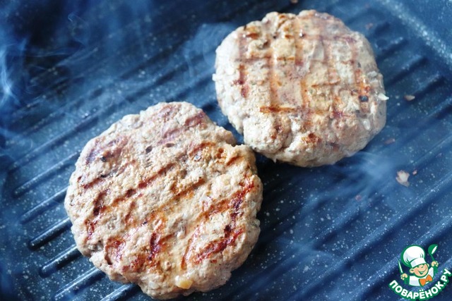 Разогреть сковороду гриль и жарить плескавицу с двух сторон до готовности.