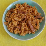 Макароны с колбасой