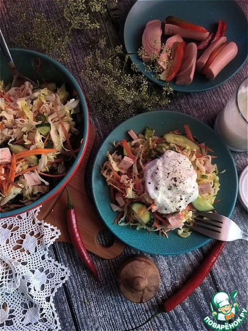 Ингредиенты для «Салат с молодой капустой и колбасой»: