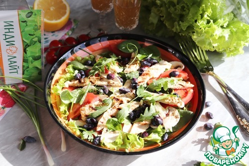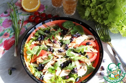 Рецепт «Зелёный салат с индейкой и жимолостью»: