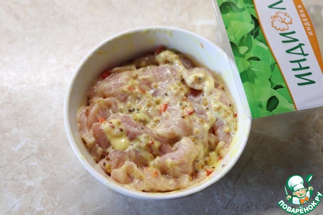 • Приготовить маринад из майонеза, зерновой горчицы и сладко-острого соуса.