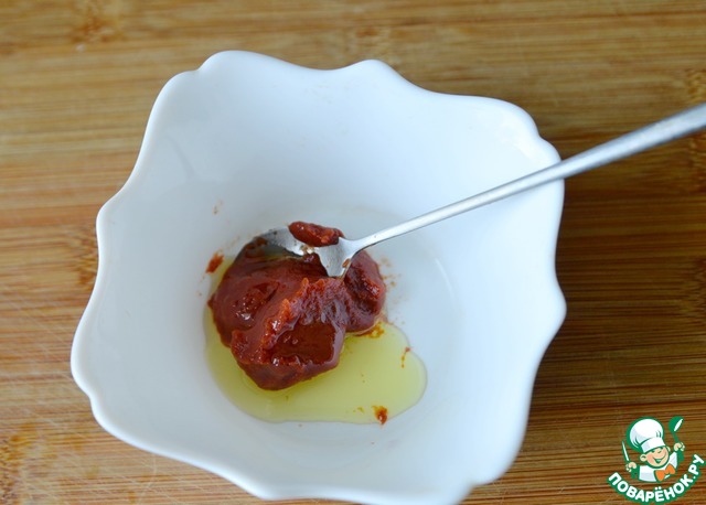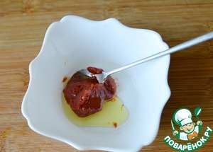 Соединяем томатную пасту и масло, перемешиваем.