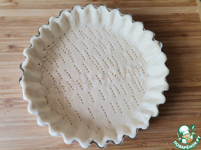 • Выложите слоеное тесто для пирога в форму для запекания (d- 20 см).