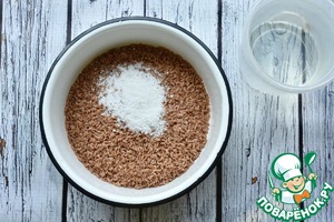 В первую очередь необходимо замочить рис девзира в теплой воде, добавив соль.