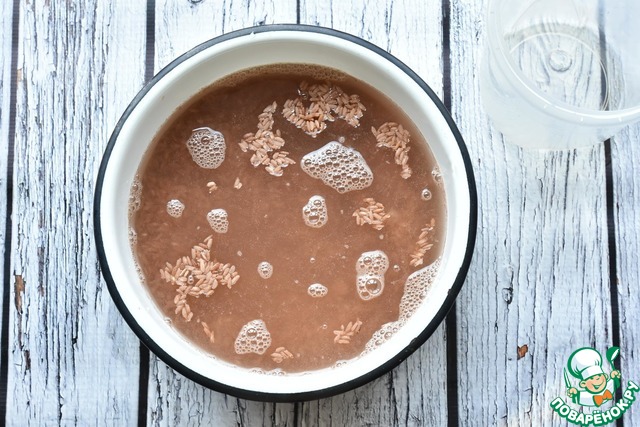 Сливаем первую воду и промываем крупу до чистой воды. Аккуратно перемешиваем зерно, стараясь не повредить его, так как, впитав влагу, оно стало хрупким.