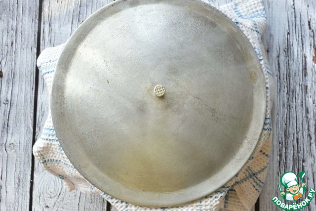 Сверху казан накрываем сухим, чистым кухонным полотенцем и крышкой. На минимальном огне оставляем плов доходить еще на 20 минут.