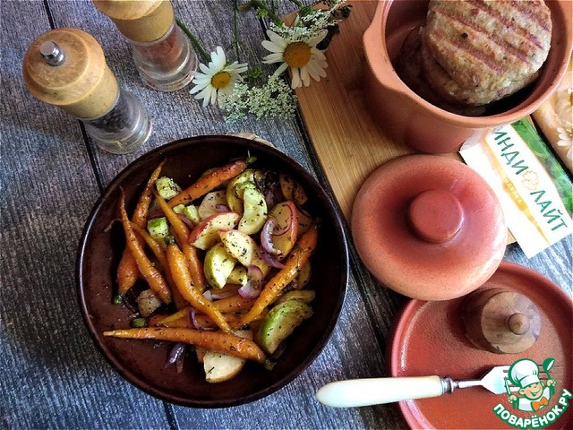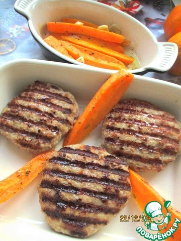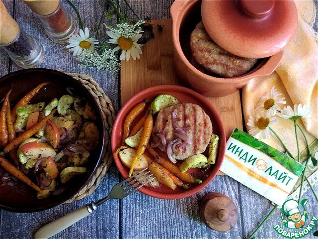 Рецепт «Котлеты из индейки к запечённым овощам»:
