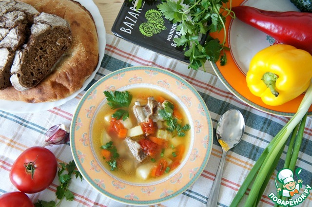 Наваристый ароматный суп на бараньих рёбрышках. Дачный - потому что для него подойдут любые сезонные овощи с грядки или с местного рынка. Ну очень вкусно! А как полезно: только овощи и свежая баранина.