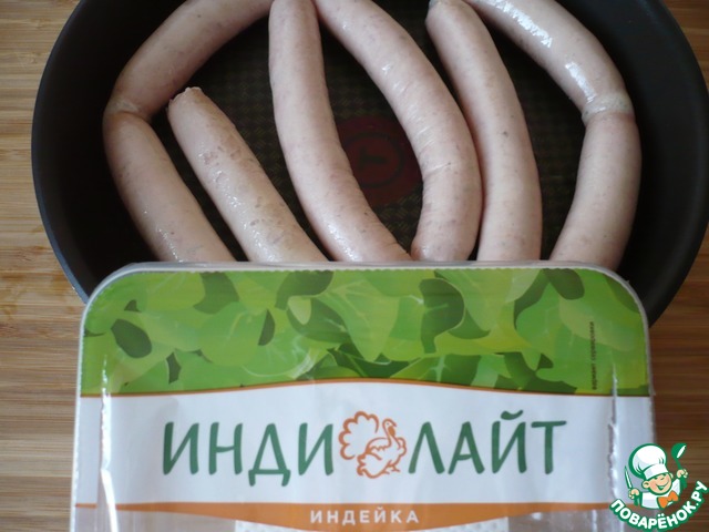• Обжарьте на сковороде колбаски для жарки ТМ "Индилайт" до готовности.
