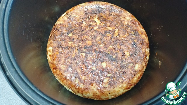 Смазав чашу, выкладываем картофельное тесто в чашу и выравниваем — Режим «Выпечка» (t-150C) 60 минут.