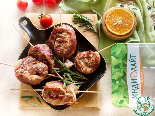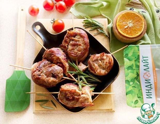 Предлагаю вам приготовить очень вкусные, сочные и ароматные улитки из индейки. В рецепте я использовала филе бедра индейки ТМ "Индилайт". Подобный рецепт уже был на сайте, но всё же добавлю и свой, поскольку маринад и ингредиенты отличаются. Сок апельсина, розмарин прекрасно сочетаются с индейкой, придавая мясу яркий цитрусовый вкус. Бекон добавляет лёгкий копчёный аромат, а добавка в виде вяленных томатов - пикантность. Такое блюдо- отличный вариант для пикника! Рекомендую вам приготовить!