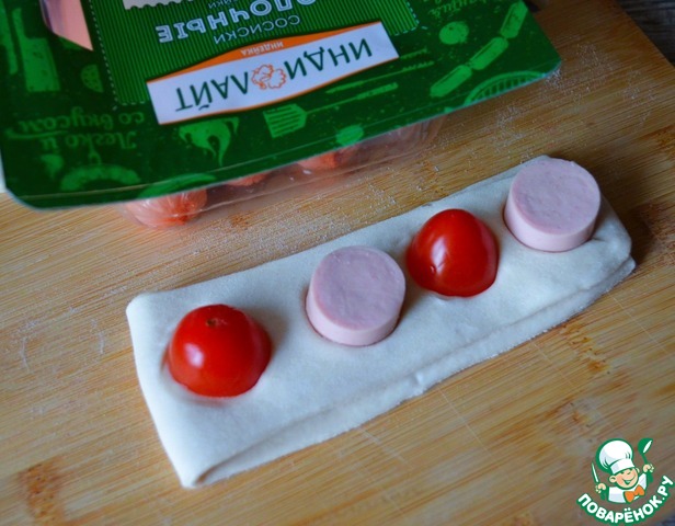 На второй половинке сделать круглые отверстия ( под размер сосиски).