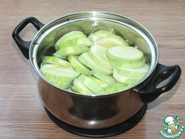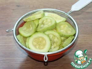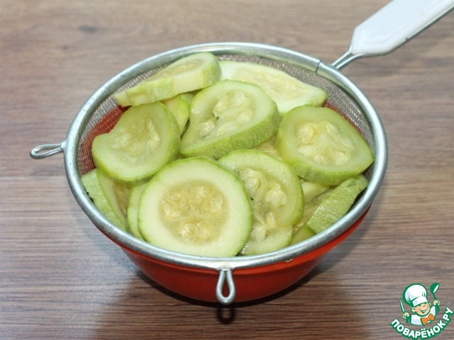 4. Затем воду сливаем и кабачки охлаждаем в сито..