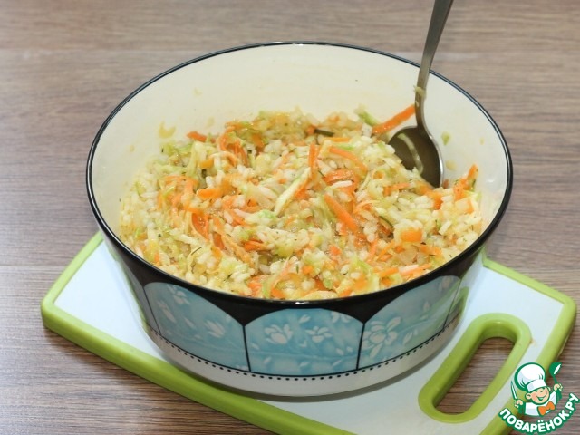 8. И через 3 минуты выкладываем тертый кабачок и сливочное масло.