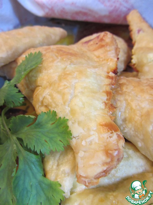 Рецепт «Слоeные пирожки с плавленным сыром и ветчиной»: