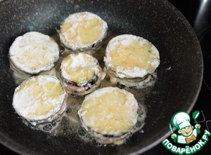 Обмакиваем фаршированный баклажан в муку, далее в яйцо и опять в муку.