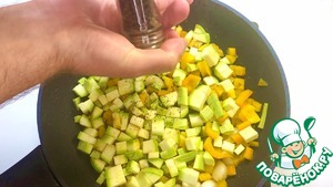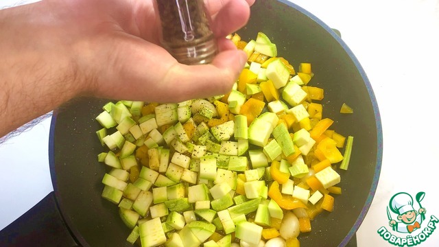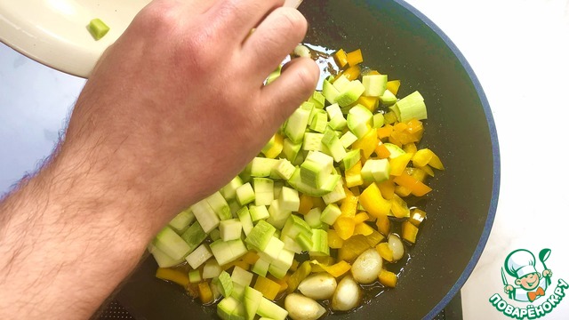 Затем в ту же сковороду в какой жарилось мясо отправляем овощи.