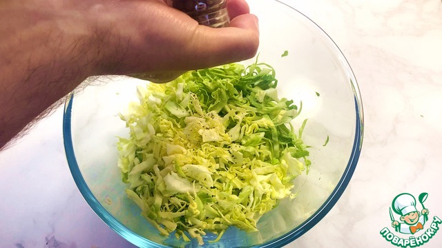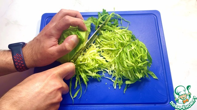 Первым делом готовим коул слоу для этого капусту мелко шинкуем.