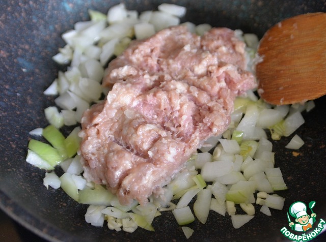 Кладём на сковороду фарш.