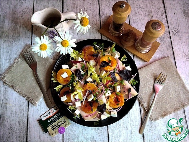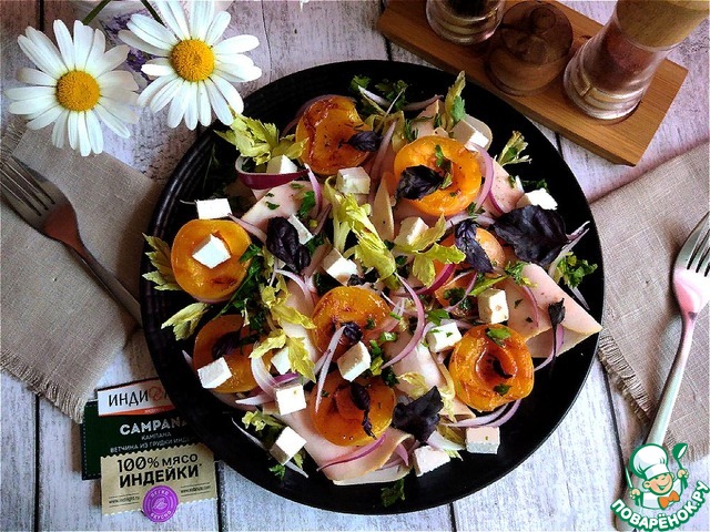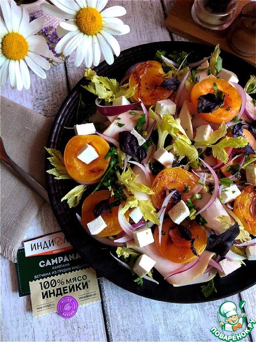 Вы пробовали когда-нибудь абрикосы-гриль? Если не пробовали, то попробуйте обязательно, а в сочетании с ветчиной из индейки и брынзы - очень привлекательно и необычно.