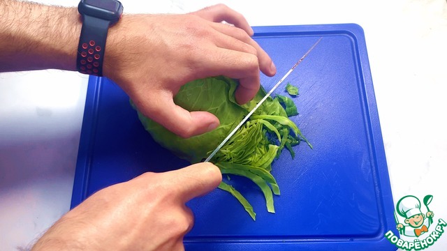 Первым делом готовим коул слоу для этого капусту мелко шинкуем.