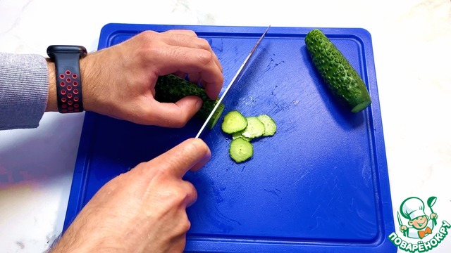 Огурец нарезаем колечками.