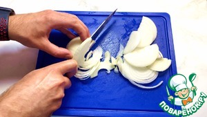 Лук нарезаем полукольцами.