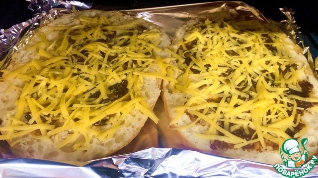 Посыпаем хлеб прованскими травами, натертым сыром и отправляем в духовой шкаф, разогретый до 20 градусов на 5 минут.
