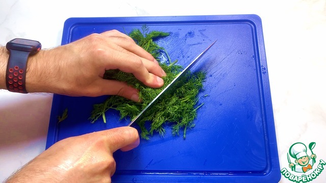 Добавляем мелко нарезанный укроп, хорошенько перемешиваем и отправляем в духовой шкаф, разогретый до 180 градусов на 20 минут.