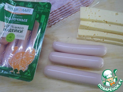 Ингредиенты для «Сосиски, фаршированные сыром»: