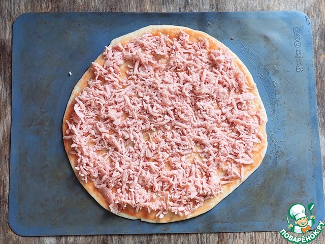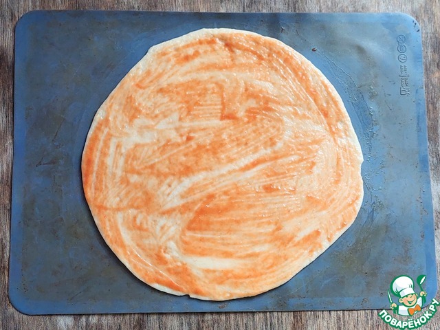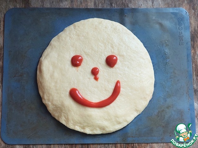 Накрыть второй частью теста, смазать кетчупом (1 ст. л.).