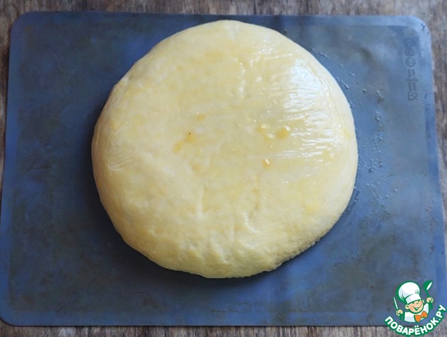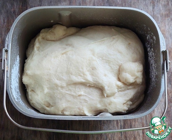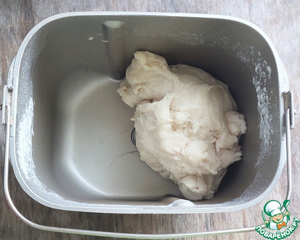 Замесить тесто. Оставить в теплом месте на 40 мин. для подъёма. Я оставляю в хлебопечке.