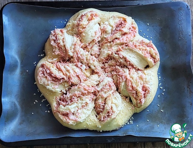 Рецепт «Дрожжевой пирог с сосисками и сыром»: