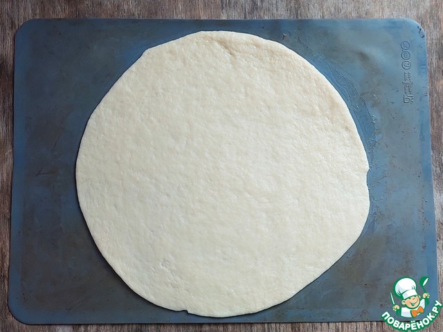 Накрыть начинку третьим кругом теста и хорошо защипнуть края теста по кругу.