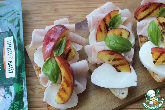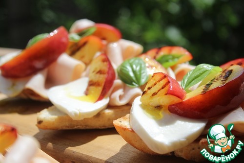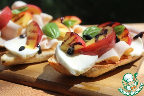 Это очень вкусно, очень просто, быстро и очень вкусно! Просто до неприличия вкусно! Романтик на природе или девичий пикник - это находка - все делается на месте на раз-два, нежная ветчина из индейки со сливочной моцареллой, с тонким ароматом базилика, с послевкусием бальзамического крема и оливкового масла, с грилованным нектарином и все это на зерновом, поджареном, вкусном хлебе - равнодушных не будет! И это очень легко и сытно! Пробуем?