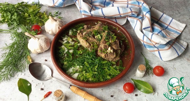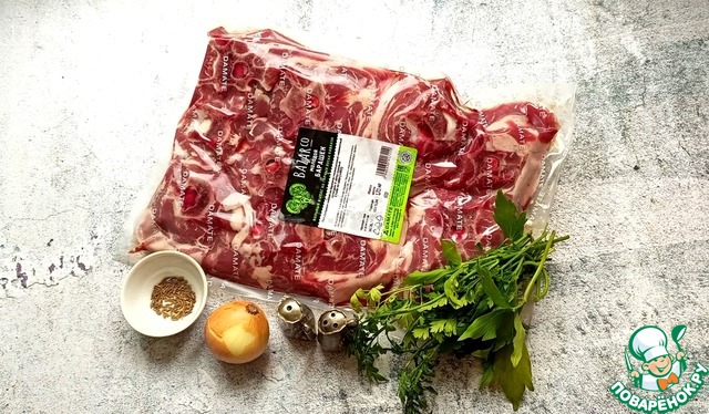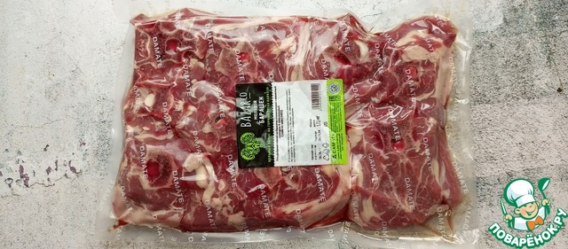 Баранину я брала из молодой баранины фирмы "BazarCo", а именно стейки шеи. Здесь и косточка и мясо с жирком, самое то для навара.