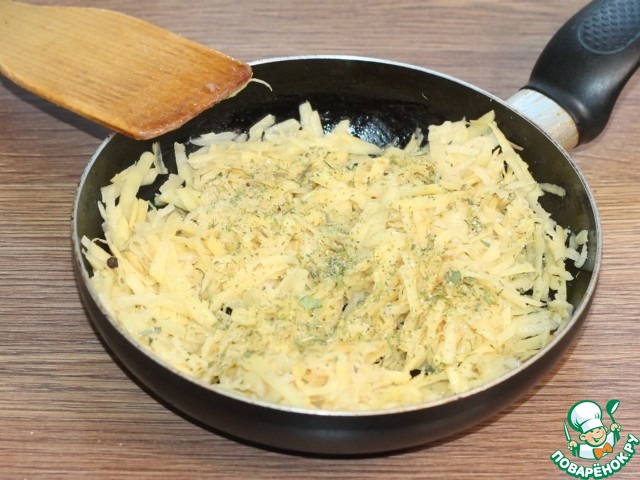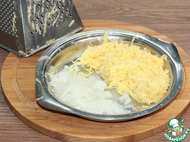 3. Одну картофелину и 1/2 часть лука натираем на средней терке.